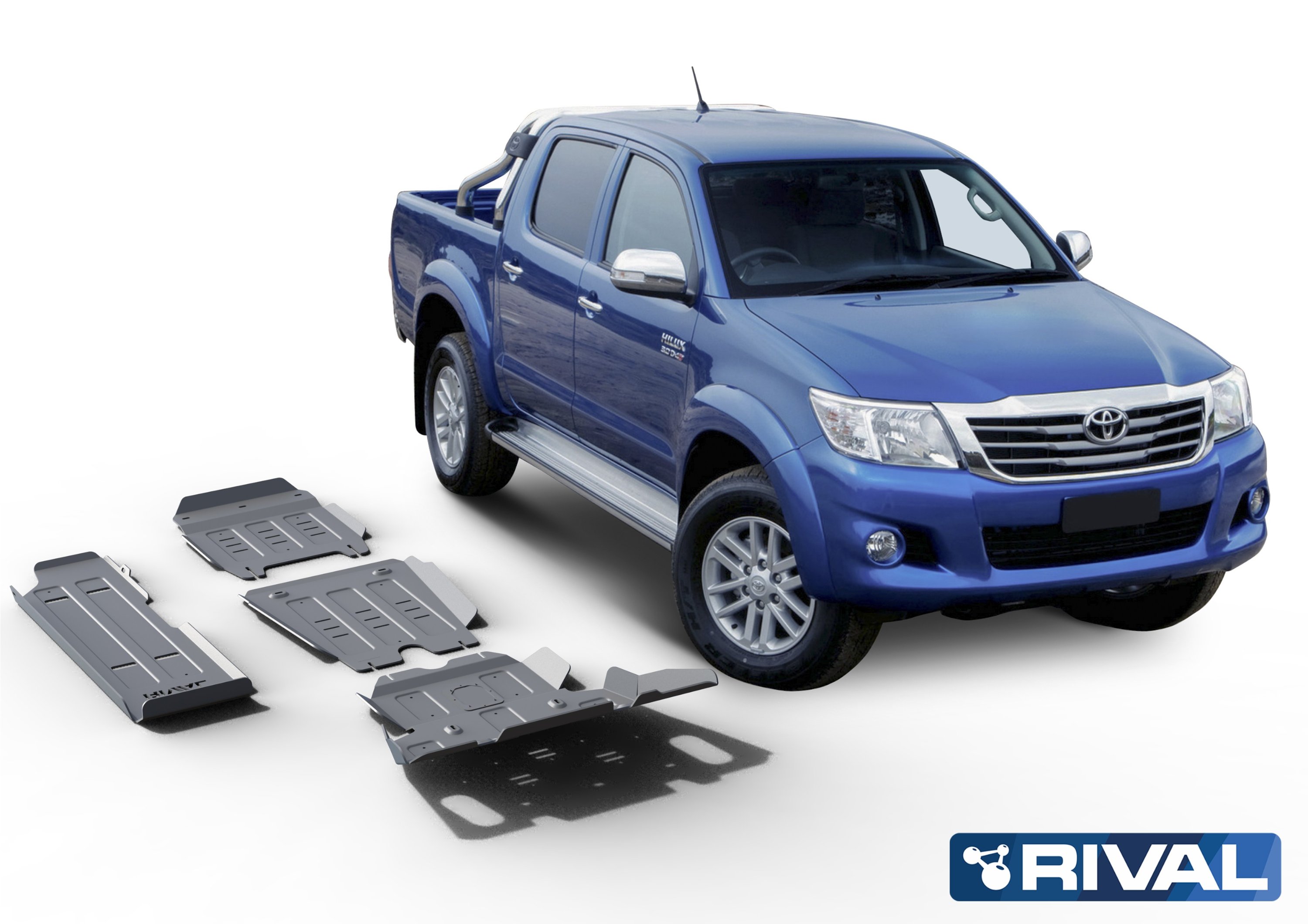 VIGO Toyota Hilux - מיגון תחתון 4 חלקים 6MM לטויוטה היילקס ויגו Rival (גחון, תיבת העברה, גיר ומיכל דלק)
